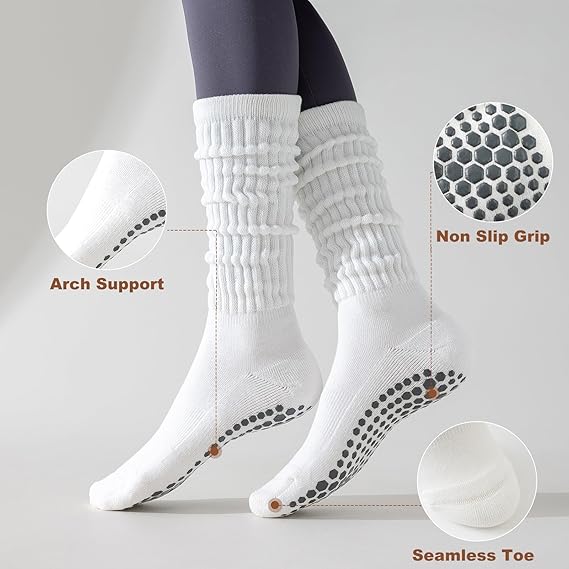 Chaussettes de Pilates antidérapantes – Style scrunch décontracté pour yoga et fitness